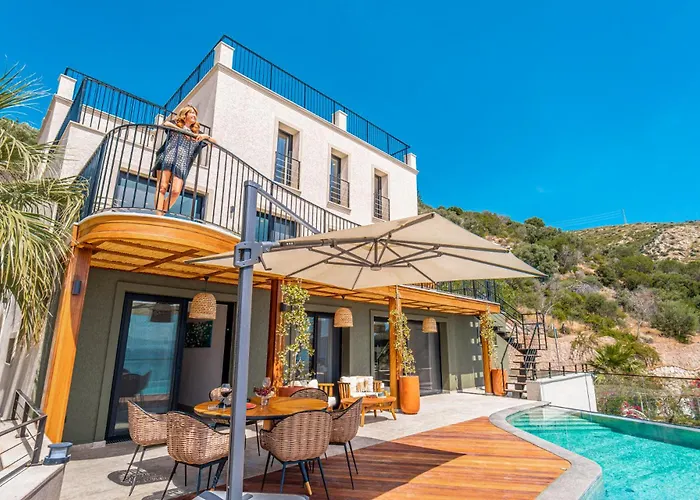 Villa Onya设有5间卧室,私人游泳池以及大海景的露台. 从别墅开车只要10分钟可至摩索拉斯王陵墓.该住所距离博德鲁姆水下考古博物馆有5分钟的车程.